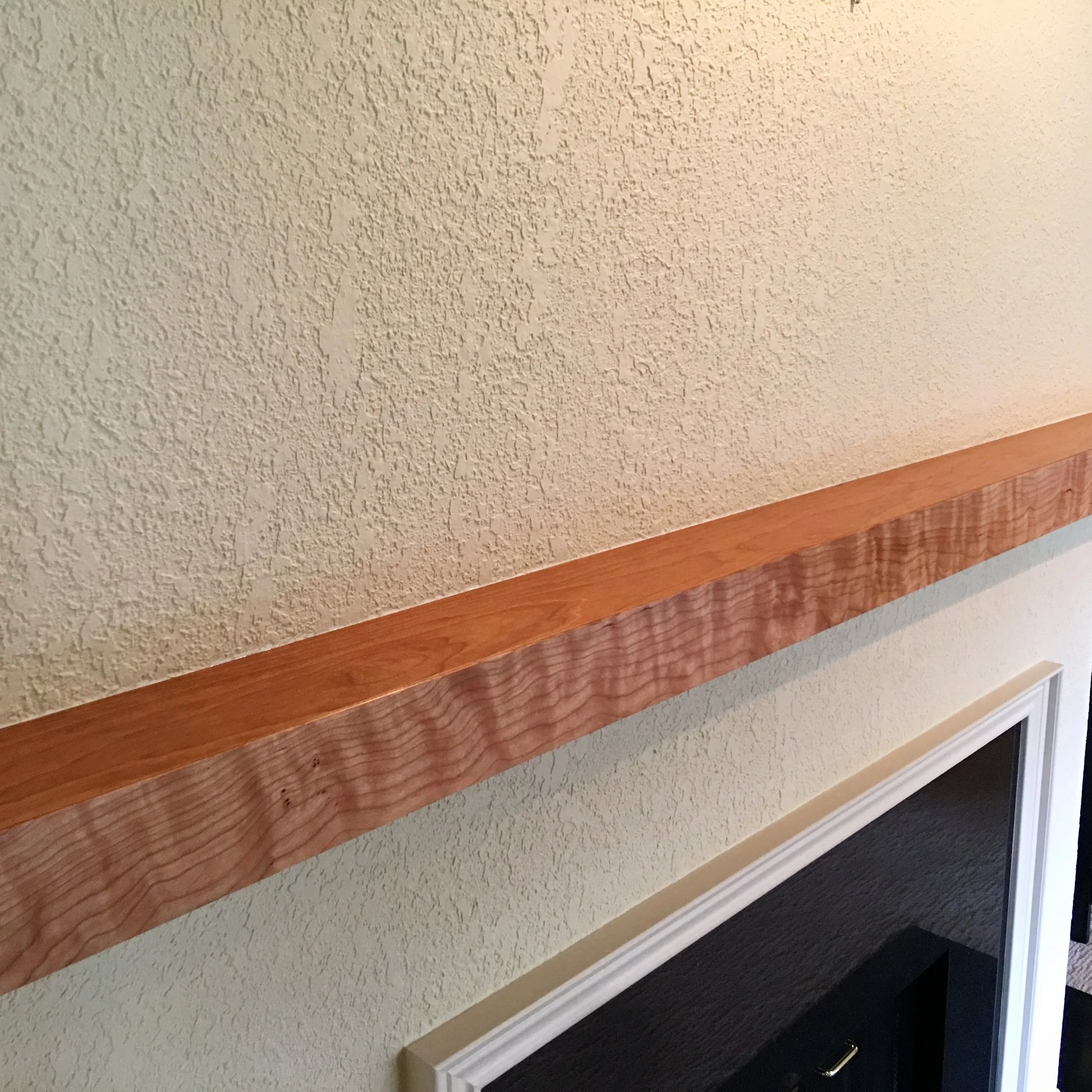 We use just a simple box-beam approach and wrapped it around the corner. To give movement to an otherwise clean line, we used some heavily curly cherry to bring attention to the grain.